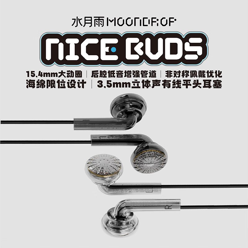 水月雨 Nice Buds 半入耳式有线耳机 9.65元: