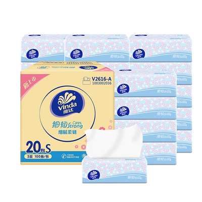 Vinda 维达 细韧抽纸 3层S码 100抽 20包 39.9元: